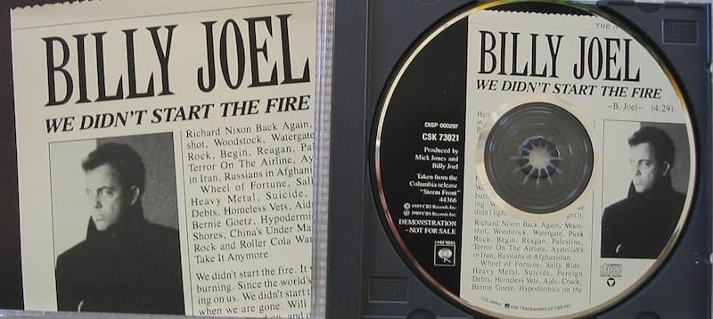 “We Didn’t Start the Fire” is a song written by American musician Billy Joel. The song was released as a single on September 18, 1989, and later released as part of Joel’s album Storm Front on October 17, 1989. A list song, its fast-paced lyrics include brief references to 119 significant political, cultural, scientific, and sporting events between 1949 (the year of Joel’s birth) and 1989, in mainly chronological order.