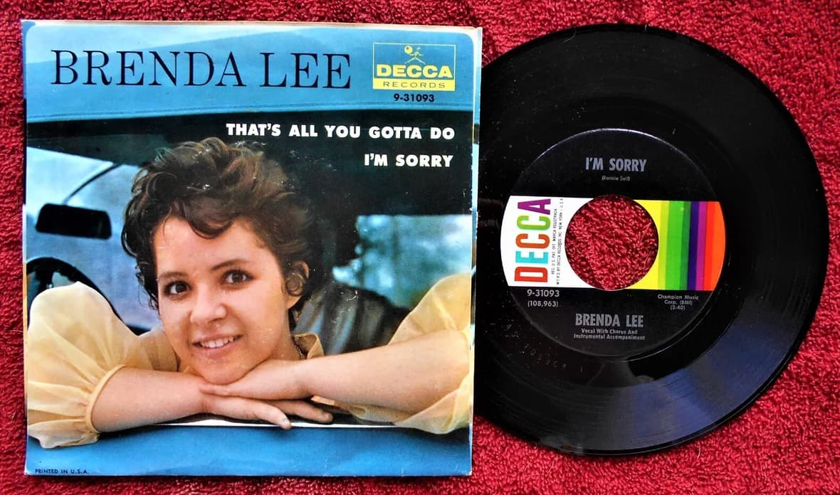 “I’m Sorry” was a 1960 hit song by American singer Brenda Lee. Ronnie Self and Dub Allbritten penned it, and Brenda sang the song when she was still 15 years old. After its release, the song peaked on Billboard’s Hot 100 singles chart number one spot in July 1960.