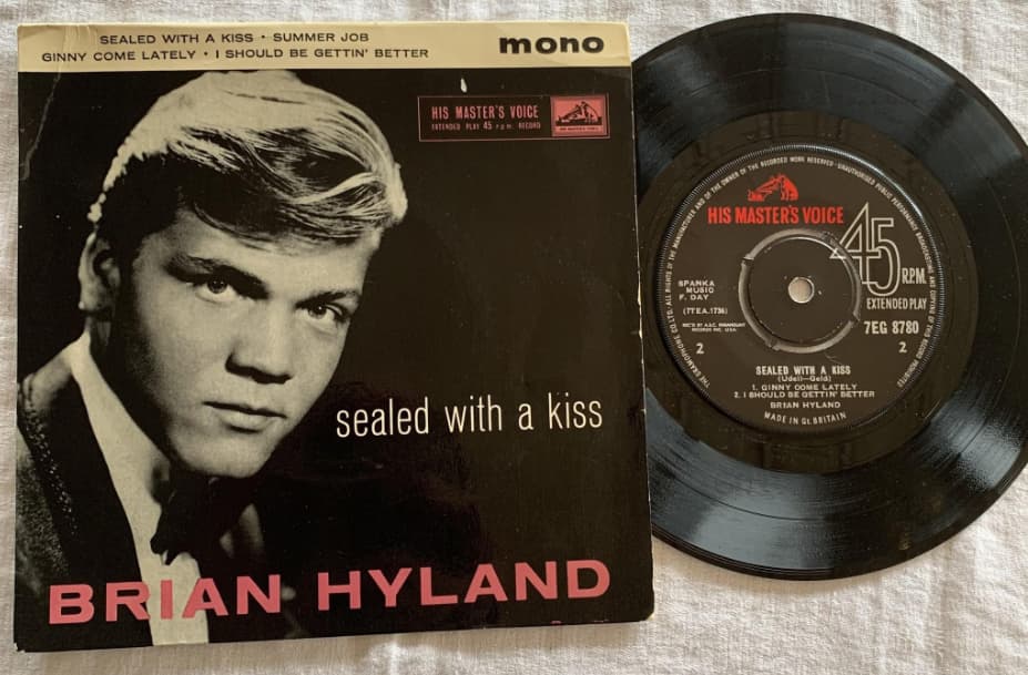 In 1962, Hyland, who often performed songs by Peter Udell and Gary Geld, heard their song “Sealed With A Kiss.” The record had previously been released in England by a group called The Four Voices and was a flop. Hyland suggested if they picked up the beat, it would be better. He recorded it, and it reached #3 on the Billboard Hot 100, #3 in the U.K., and #22 in Australia.