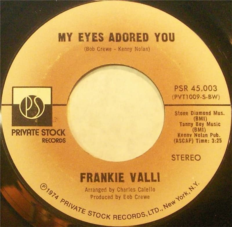 “My Eyes Adored You” is a 1974 song written by Bob Crewe and Kenny Nolan. It was originally recorded by The Four Seasons in early 1974. After the Motown label balked at the idea of releasing it, the recording was sold to lead singer Frankie Valli for $4000. After rejections by Capitol and Atlantic Records, Valli succeeded in getting the recording released on Private Stock Records, but the owner/founder of the label, Larry Uttal, wanted only Valli’s name on the label. It is from the album Closeup.