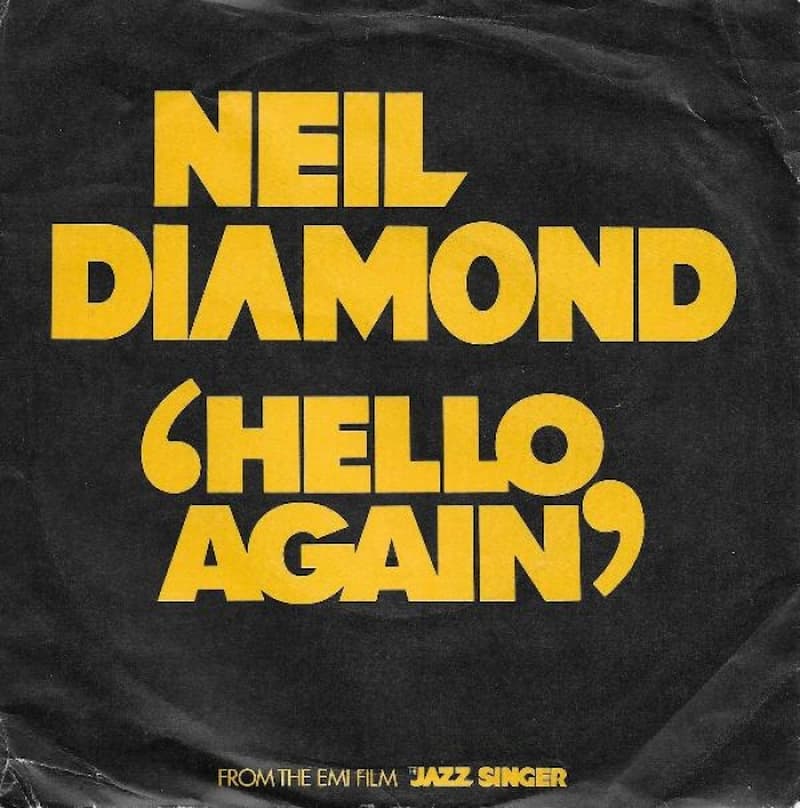 “Hello Again” is a song written by Neil Diamond and Alan Lindgren that appeared in the 1980 movie, The Jazz Singer, and was performed by Diamond on the soundtrack album to the film. It was also released as a single and reached No. 6 on the Billboard Hot 100 and No. 3 on Billboard’s Adult Contemporary chart. Billboard also ranked as the 70th top pop single for 1981. In the UK, the song peaked at No. 51. The song also peaked at No. 18 in Ireland.