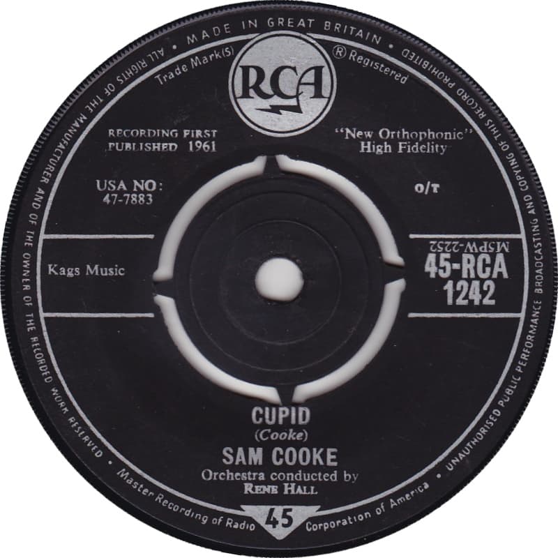 “Cupid” is a song by American singer Sam Cooke, released on May 16, 1961. It charted at number 17 on the Billboard Hot 100 and number 20 on the Hot R&B Sides chart; the track performed best in the United Kingdom, peaking at number seven on the UK Singles Chart. The song is featured on Cooke’s greatest hits album, The Best of Sam Cooke (1962). Cooke’s producers had asked him to write a song for a girl they had seen on a Perry Como TV show—but once they heard her sing, they kept “Cupid” for Cooke himself.